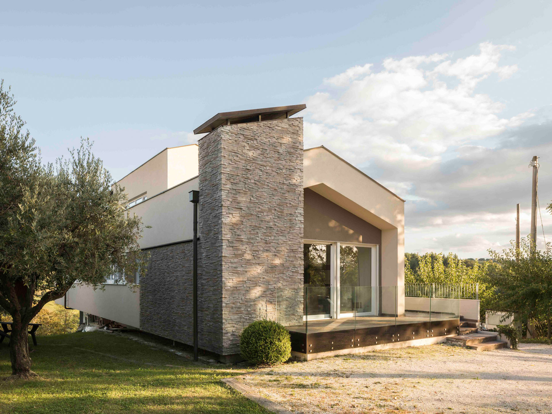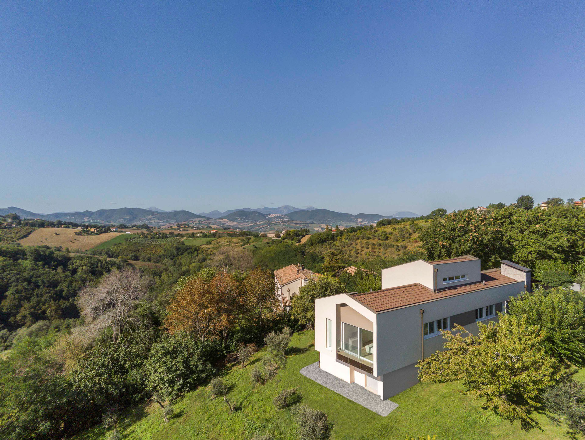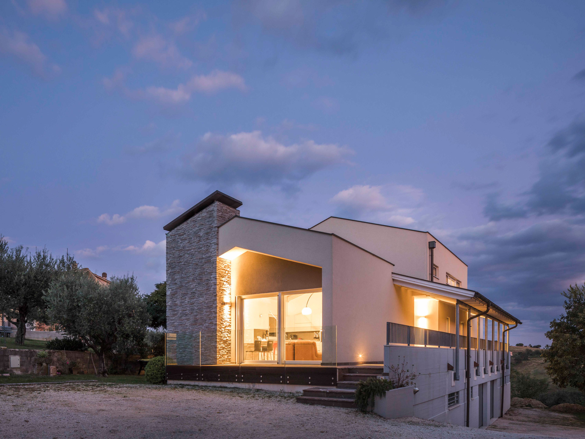 In a small village near Ancona, an earthquake-proof house overlooks the valley dotted with olive trees.