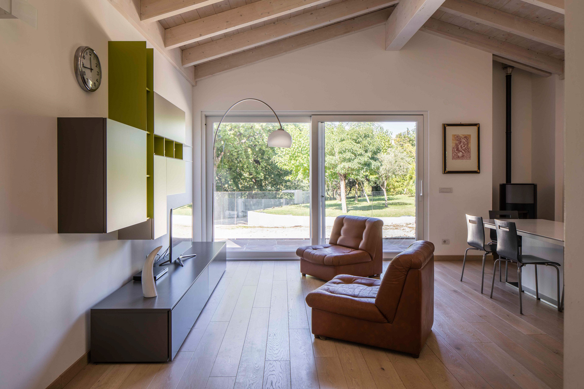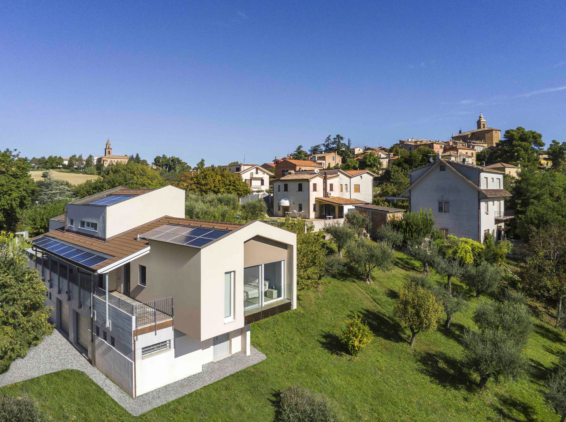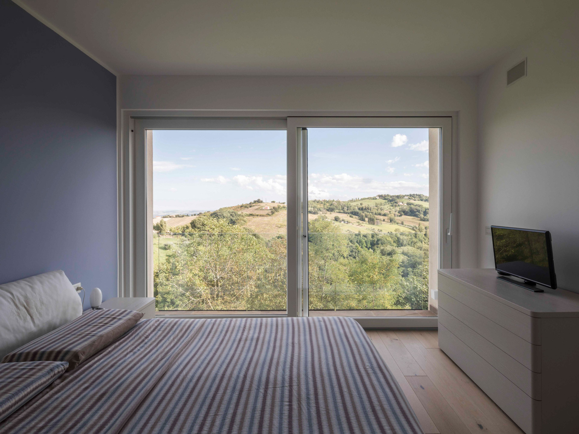 In a small village near Ancona, an earthquake-proof house overlooks the valley dotted with olive trees.