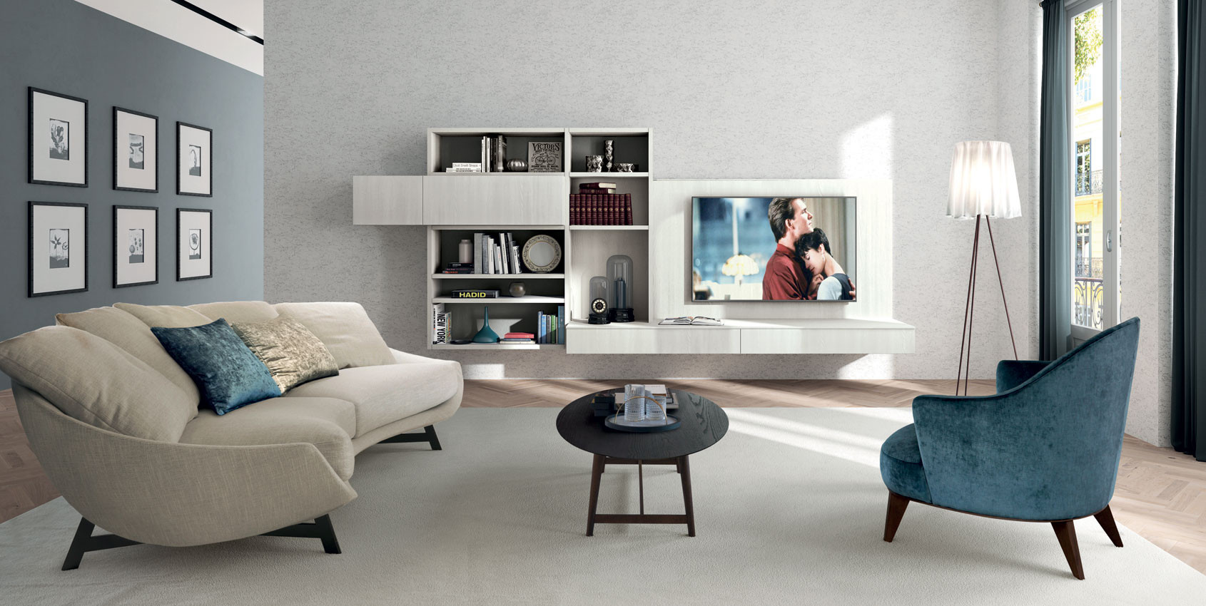 A wide range of furniture for the living room, for the sleeping area, for the bedroom and home office, with a modern design to furnish your living room and home areas in a welcoming and distinctive way. The wide modularity of the furniture offers a wide choice of customization.