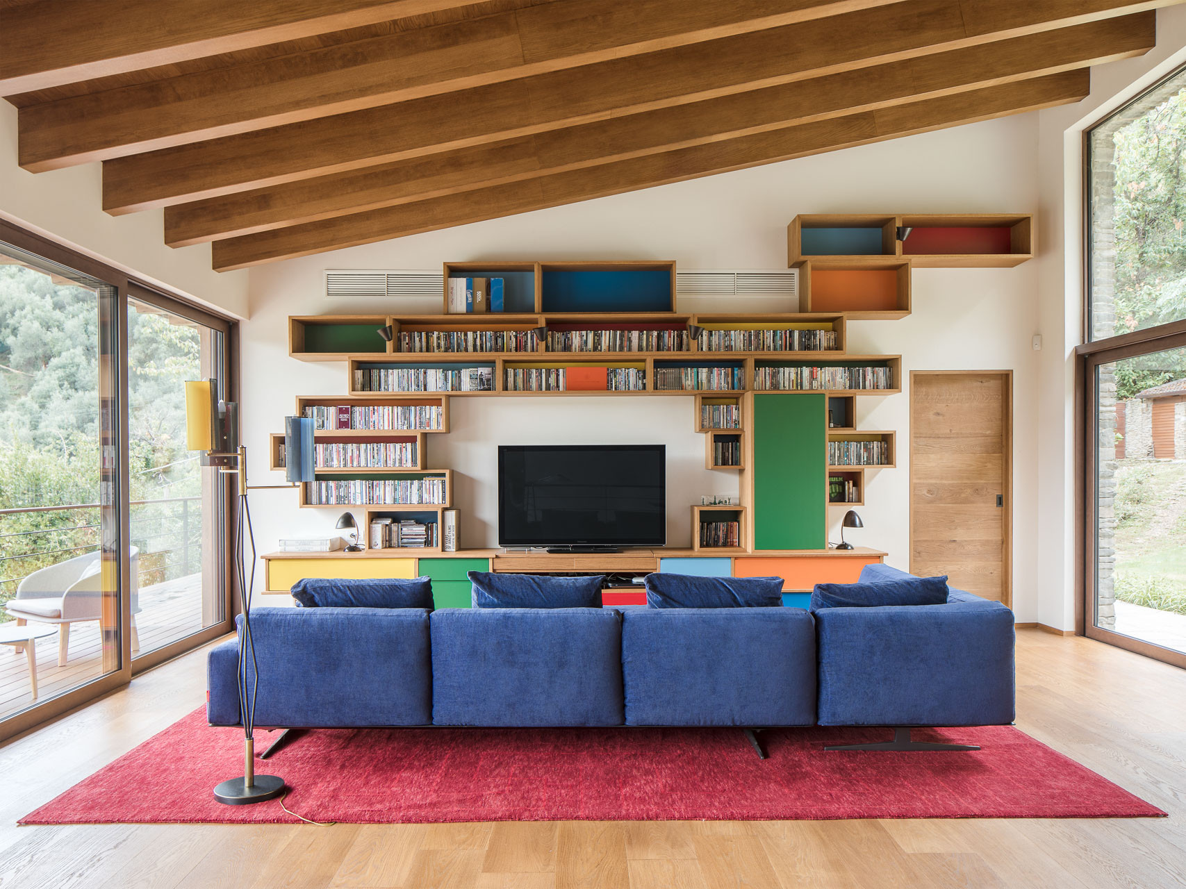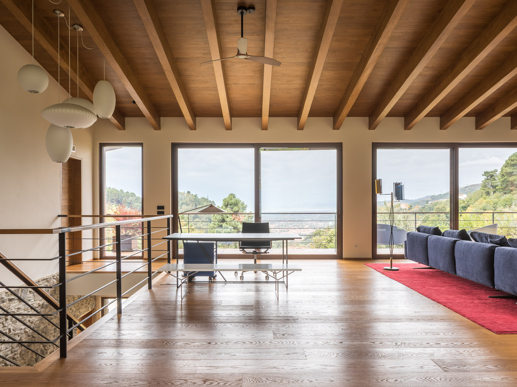 Le toit à pente unique résulte tout particulièrement léger par rapport à sa taille : il a été réalisé avec une technique particulière d’interruption, qui lui confère une légèreté particulière tout en maintenant toutes les caractéristiques énergétiques d’une maison Wolf Haus Energia Più.