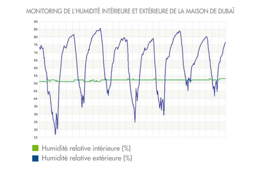 Pour démontrer l'efficacité de notre système de construction, Wolf Haus surveille diverses maisons en bois qu'elle a construites dans différentes zones climatiques, y compris un bâtiment construit dans l'une des zones climatiques les plus extrêmes du monde : Dubaï.