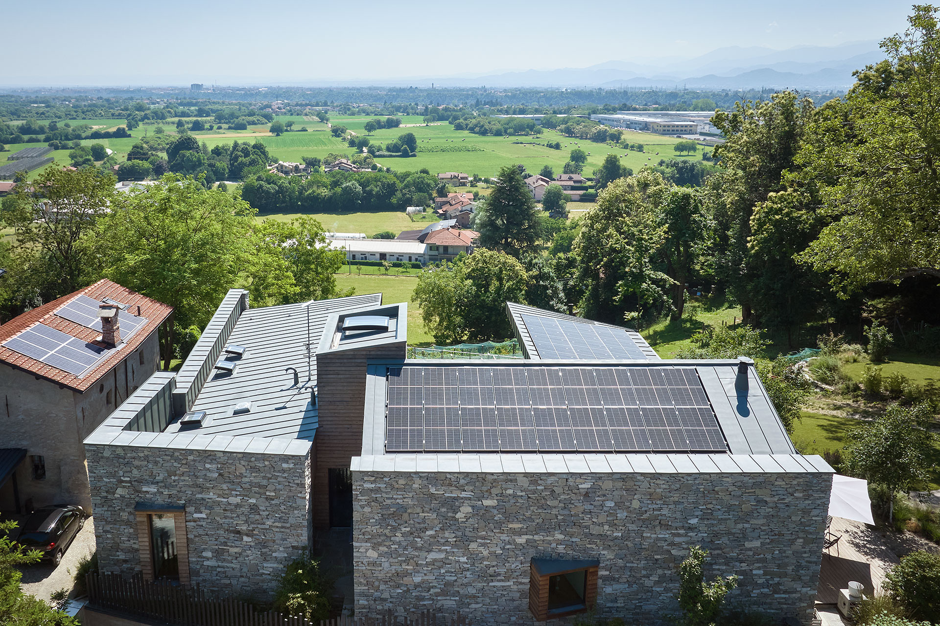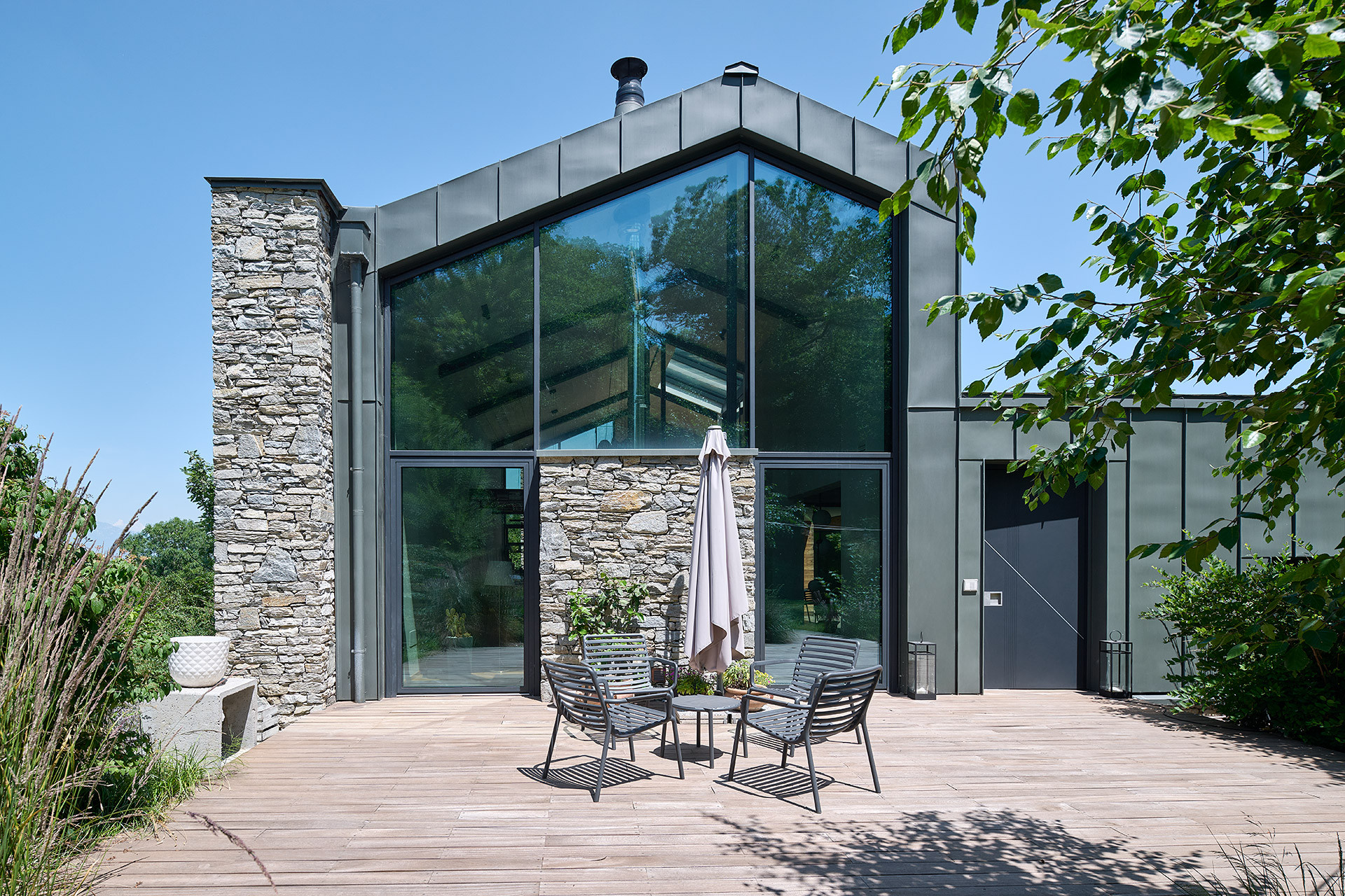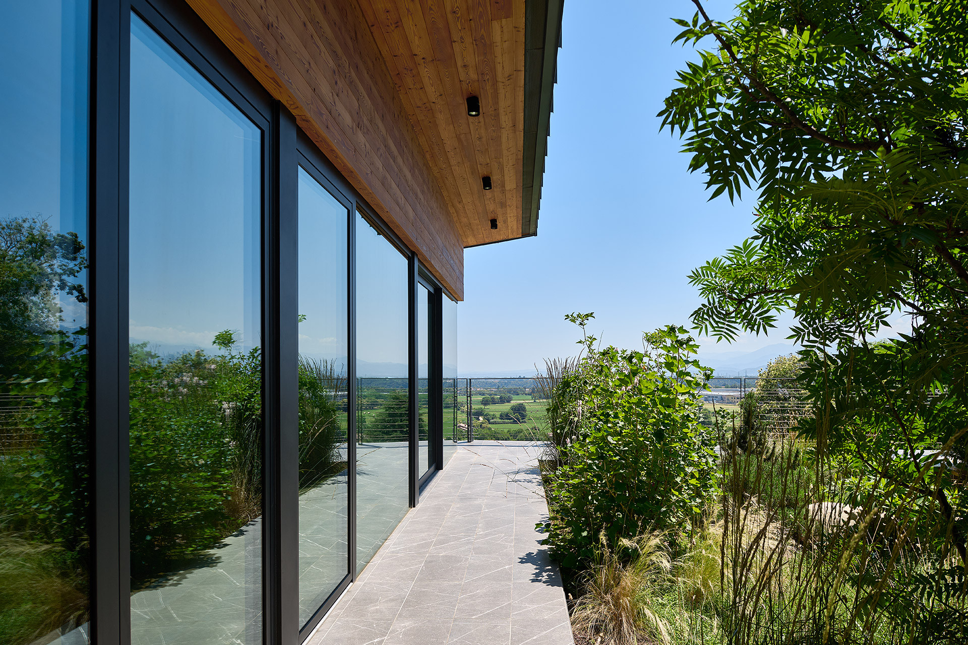 Villa Ulissys è una villa unifamiliare in legno realizzata in provincia di Cuneo, progettata per coniugare architettura contemporanea, efficienza energetica e qualità dell’abitare. Il progetto si distingue per una composizione volumetrica articolata in tre ali che generano un cortile interno raccolto e protetto, cuore dello spazio domestico e elemento centrale dell’identità architettonica. Questo spazio aperto favorisce privacy, illuminazione naturale e continuità tra ambienti interni ed esterni, creando un rapporto armonico con il paesaggio circostante.