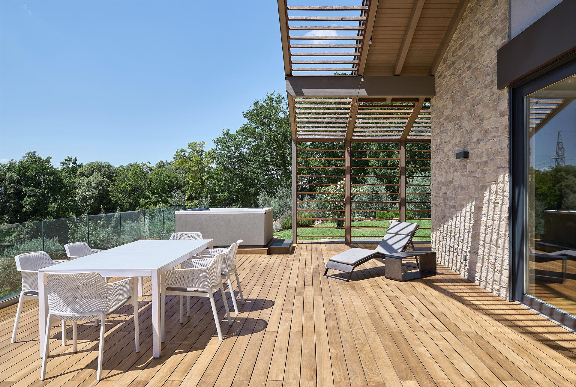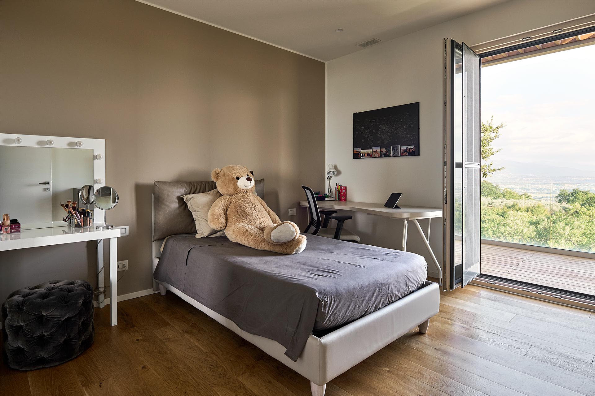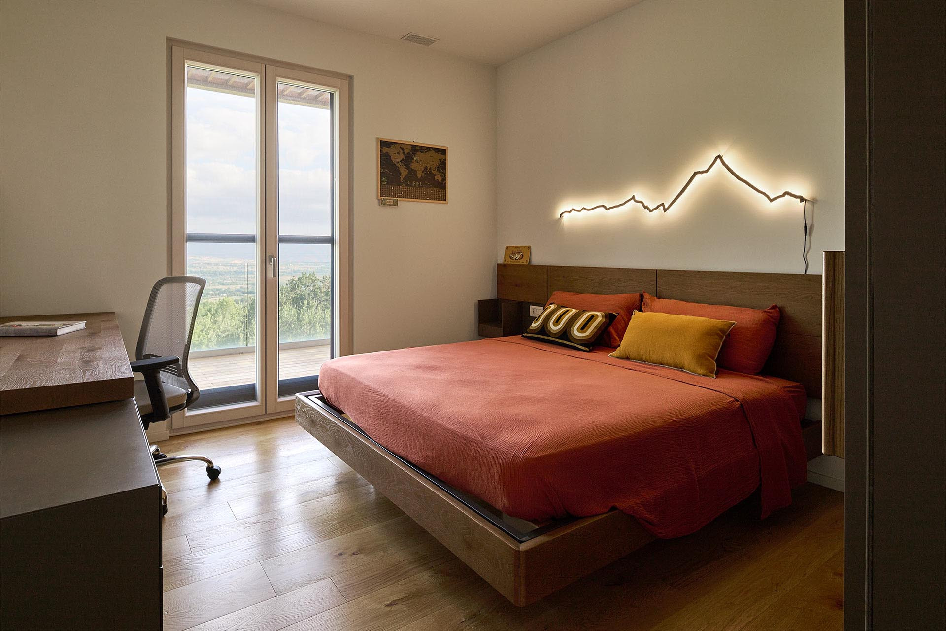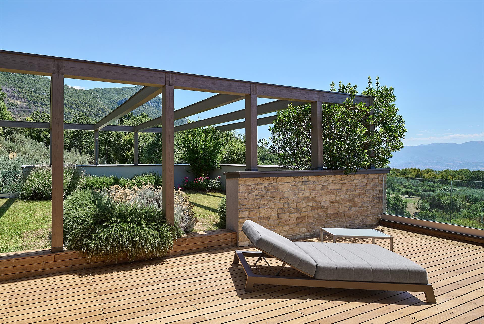 La continuità tra interno ed esterno è stata accentuata con grandi aperture e infissi scorrevoli che, una volta aperti, cancellano il confine tra gli ambienti, ampliando la sensazione di spazio e libertà. Allo stesso tempo, uno spazio privato nel sotto tetto offre un rifugio per momenti di tranquillità e concentrazione, completando l'esperienza abitativa unica offerta da Villa Itaca.