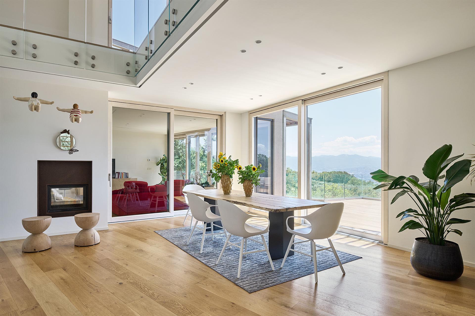 Il design di VillaItaca si sposa perfettamente con il paesaggio circostante, offrendo un'esperienza unica che celebra la bellezza naturale del luogo. Il corpo centrale della casa agisce come un cannocchiale, separando in modo trasparente la zona pubblica da quella privata, consentendo una vista panoramica senza ostacoli dalla montagna alla valle.