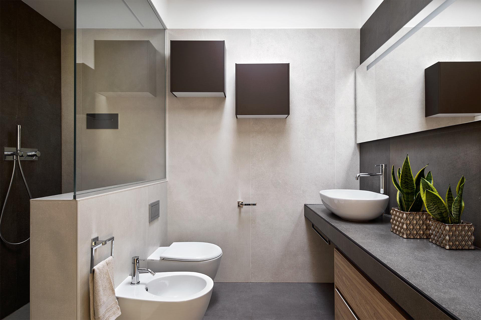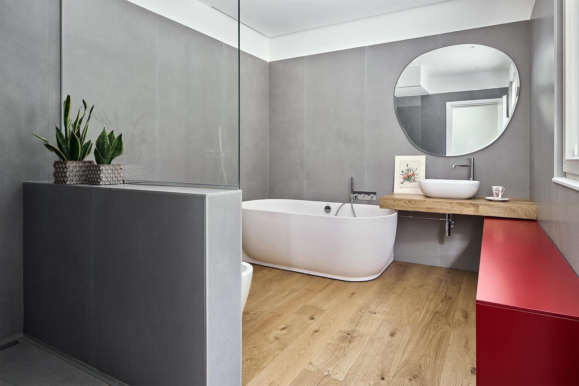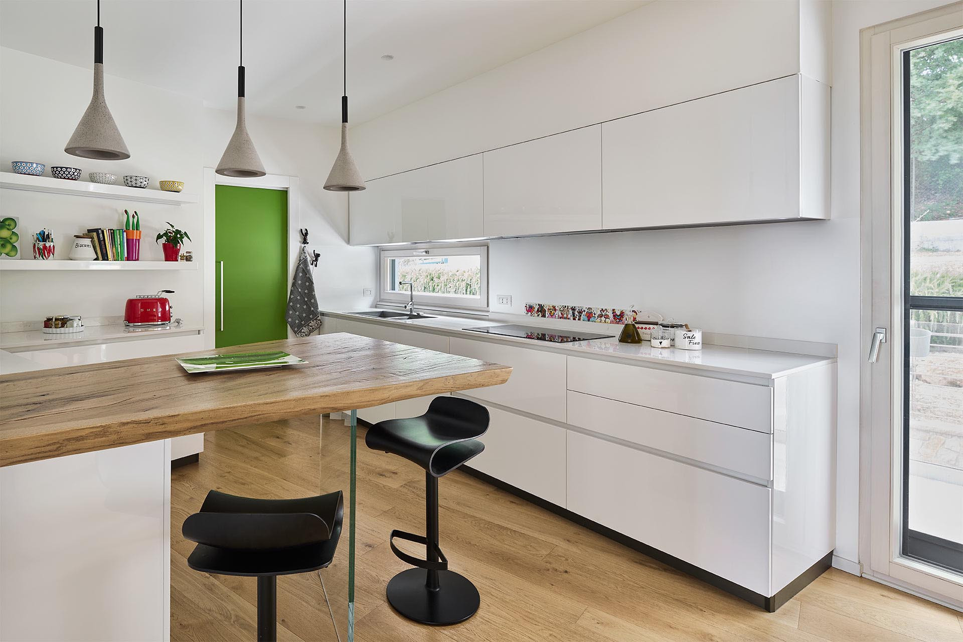 La richiesta della cliente di uno spazio verde privato è stata pienamente soddisfatta con l'inserimento di un ampio tetto giardino di oltre 120 metri quadrati, accanto a un solarium in teak che abbraccia lo spazio della serra solare. La progettazione degli spazi è stata orientata verso la convivialità e la fluidità, con ampie connessioni e vetrate che permettono un passaggio naturale tra gli ambienti interni ed esterni.