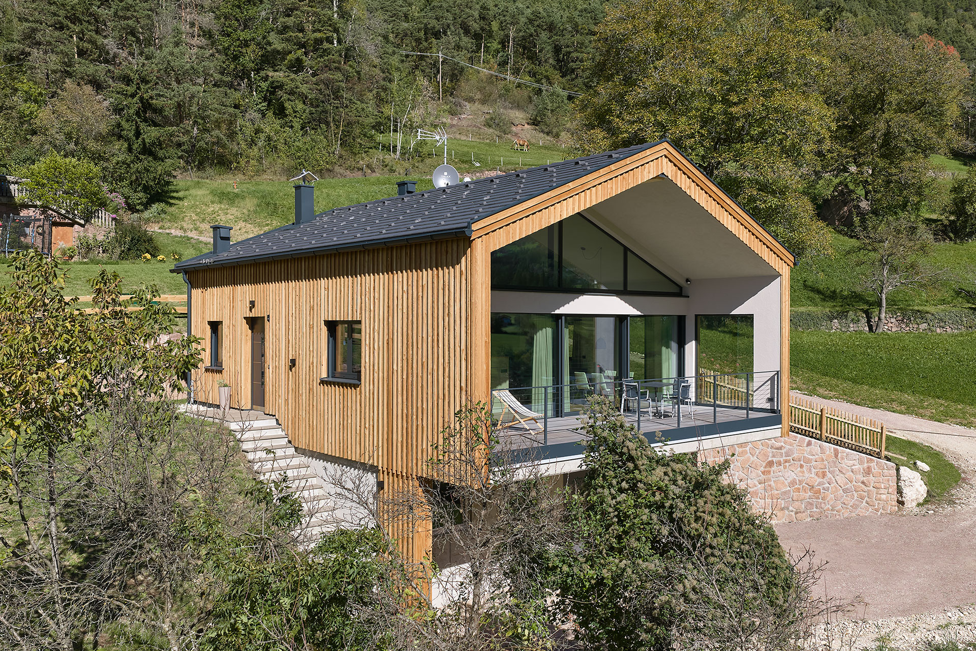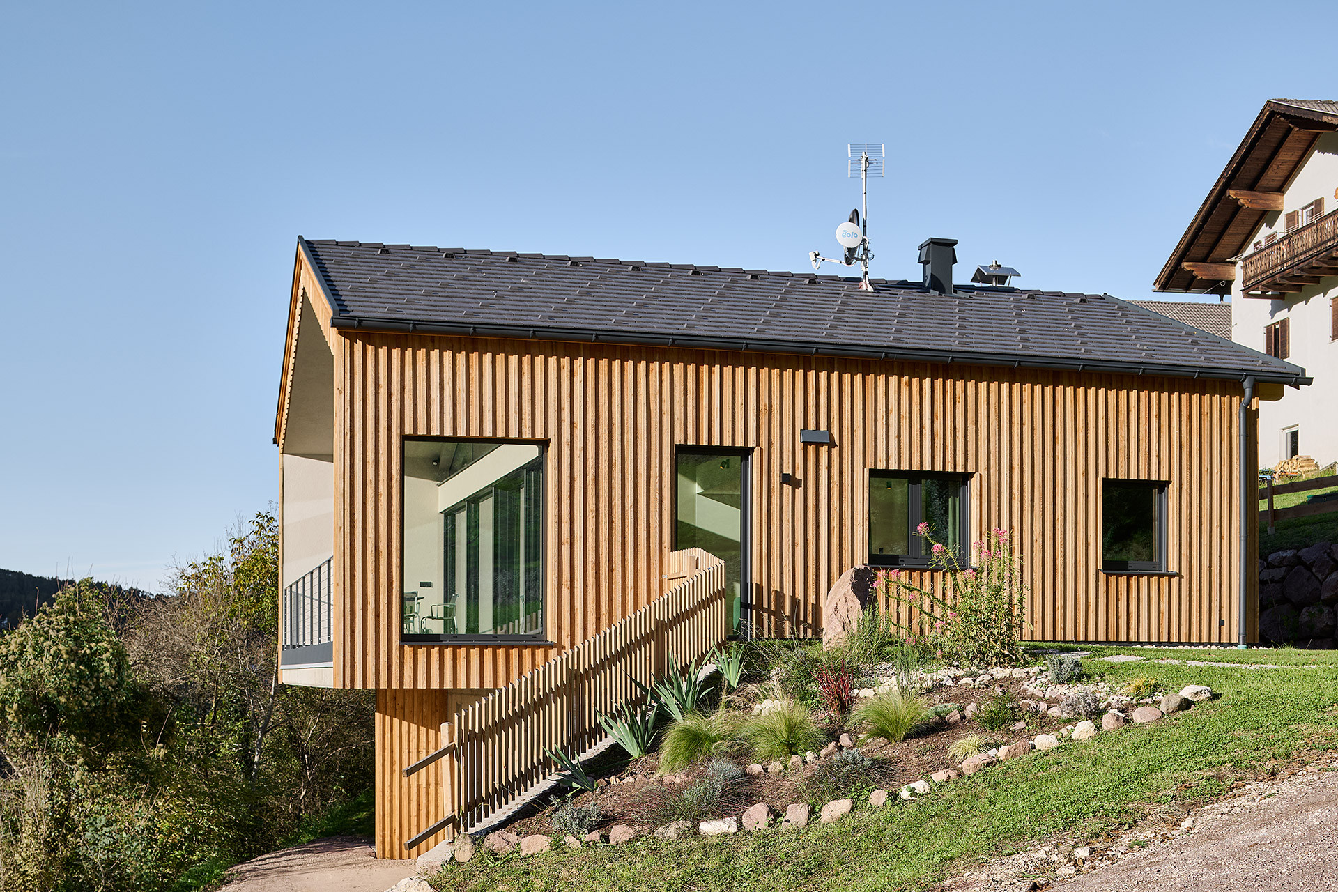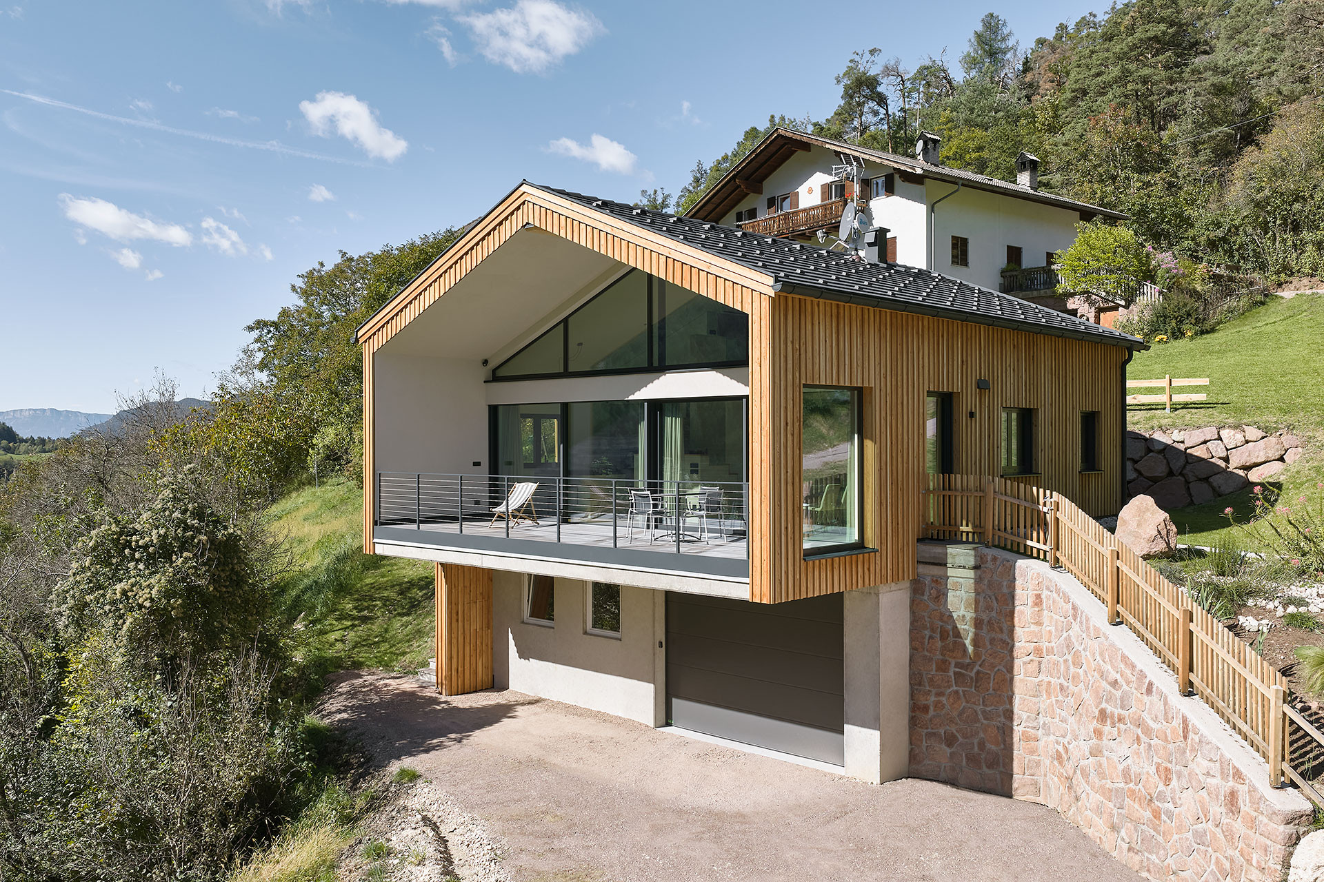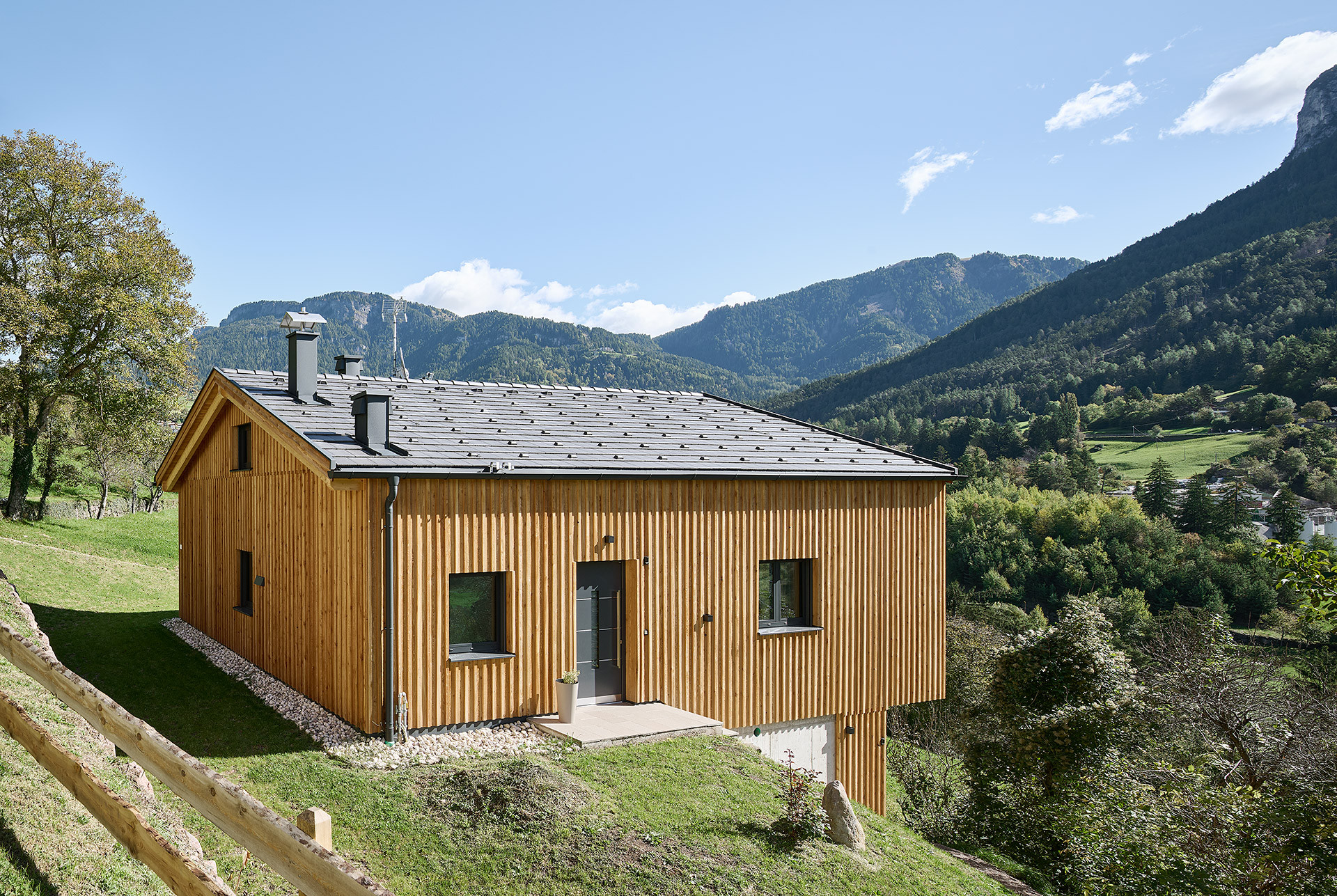 Casa in legno unifamiliare a Bolzano Arja: design minimal e integrazione montana