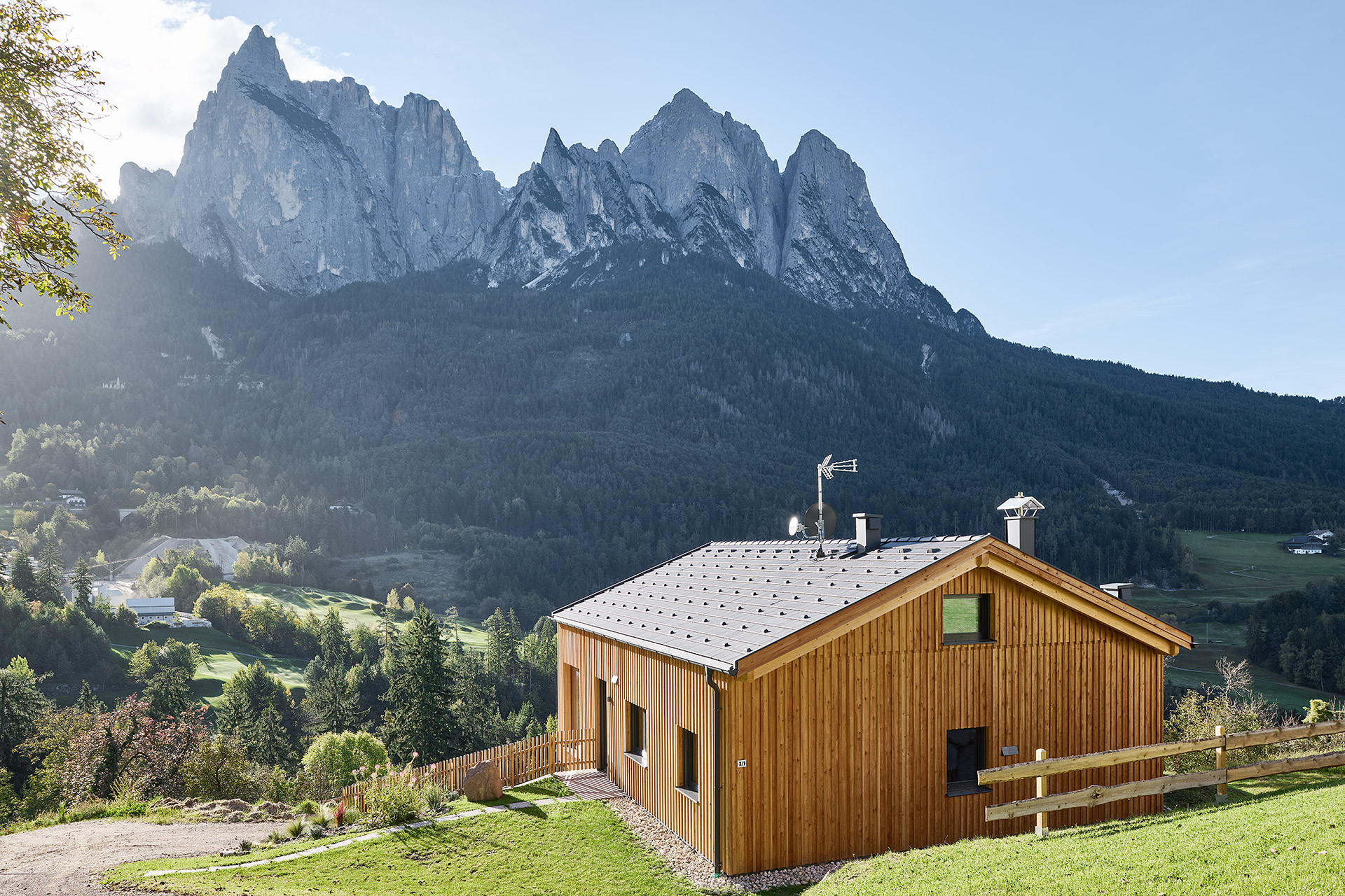 Costruita in provincia di Bolzano, Arja è ispirata al progetto personalizzabile Wolf Haus, pensata per integrarsi nel contesto montano e nel paesaggio naturale dell’Alto Adige. Questa abitazione in legno con rivestimento esterno in larice valorizza il rapporto con l’ambiente alpino, combinando tradizione ed estetica contemporanea attraverso volumi puliti e materiali naturali. L’utilizzo del larice conferisce alla facciata un carattere distintivo, evocando l’architettura locale e favorendo una perfetta continuità visiva tra l’edificio e la natura circostante. Le grandi vetrate aprono gli interni al panorama, portando la luce e la bellezza delle montagne direttamente negli spazi abitativi, mentre il legno caldo e naturale conferisce all’ambiente una sensazione di accoglienza e armonia.