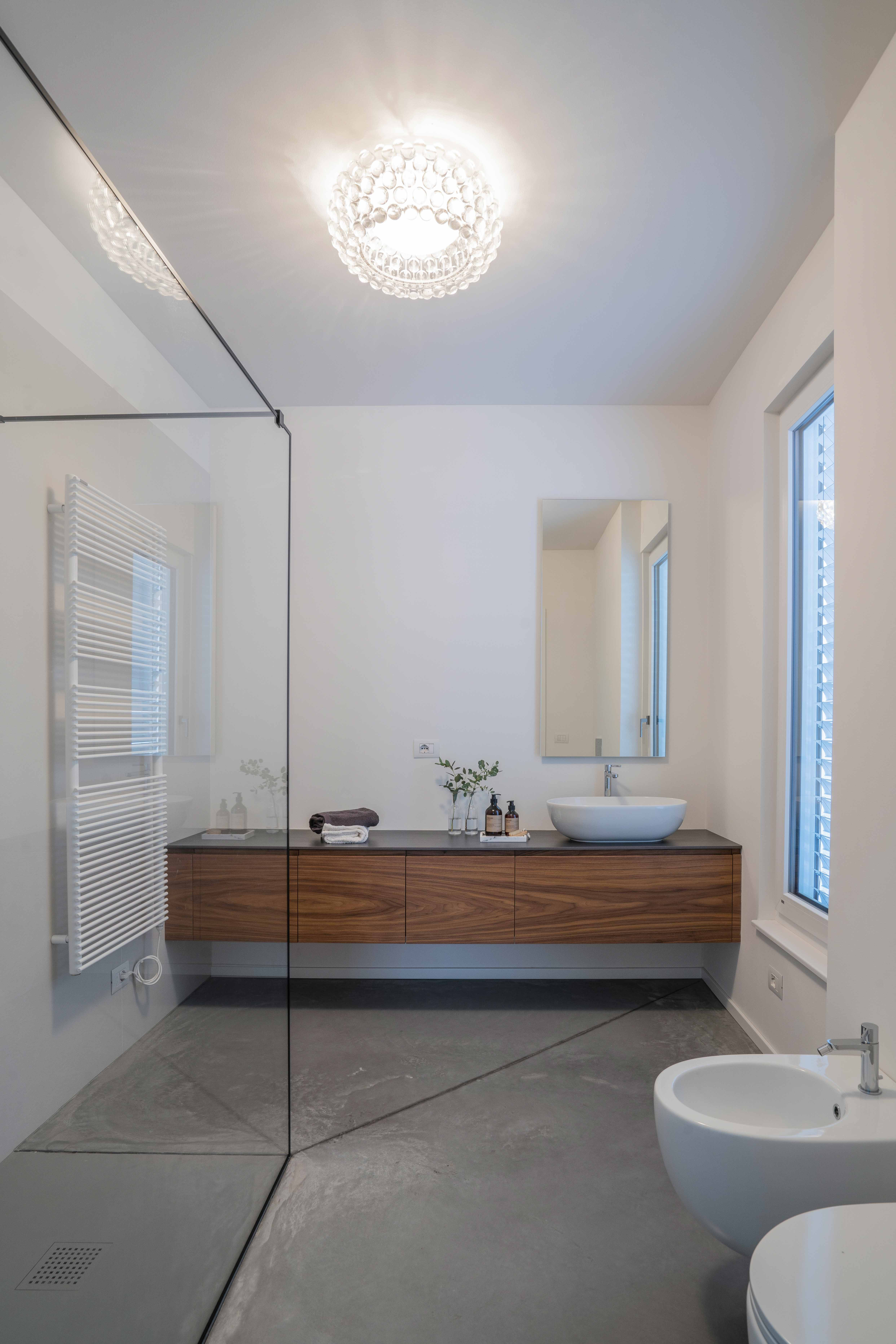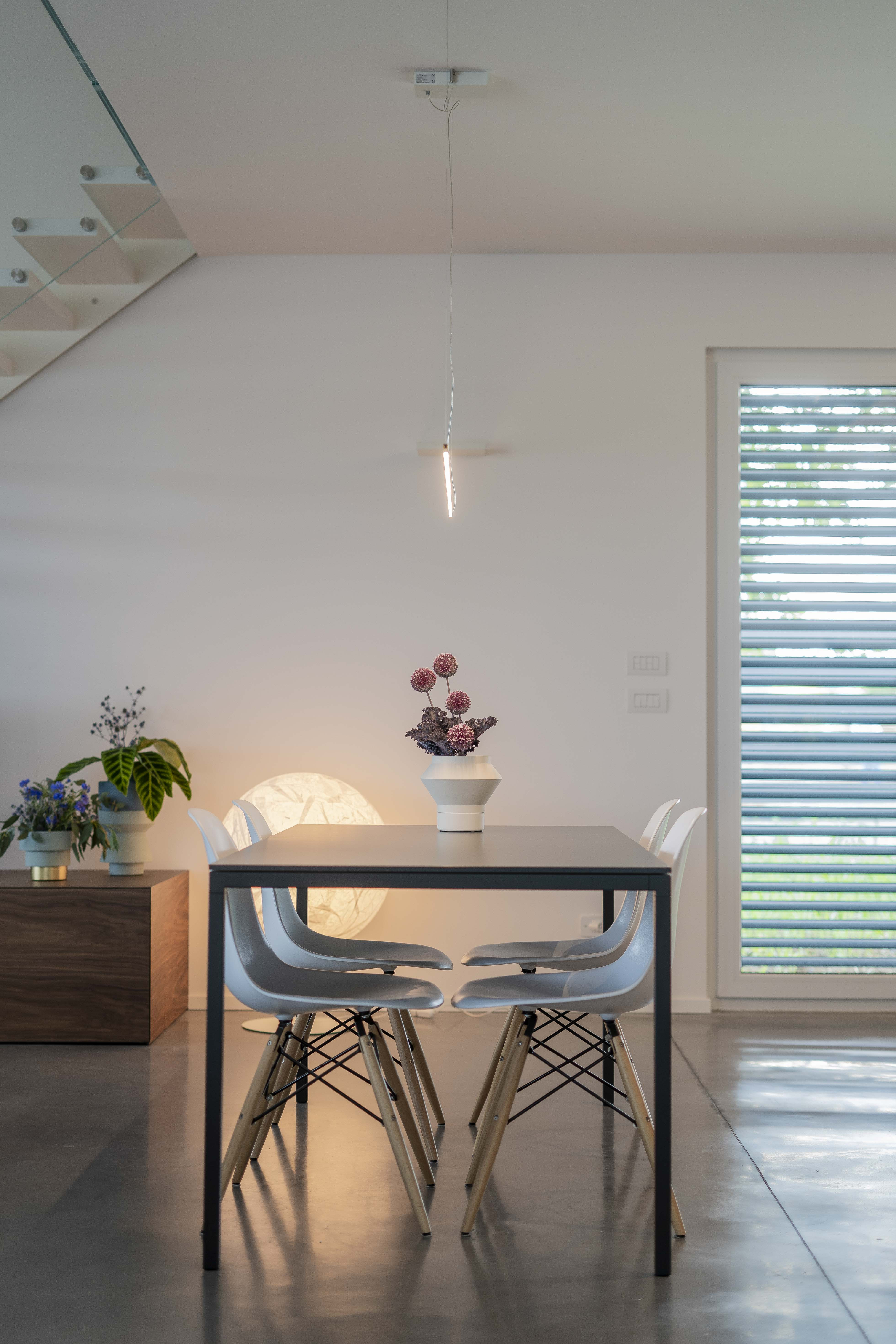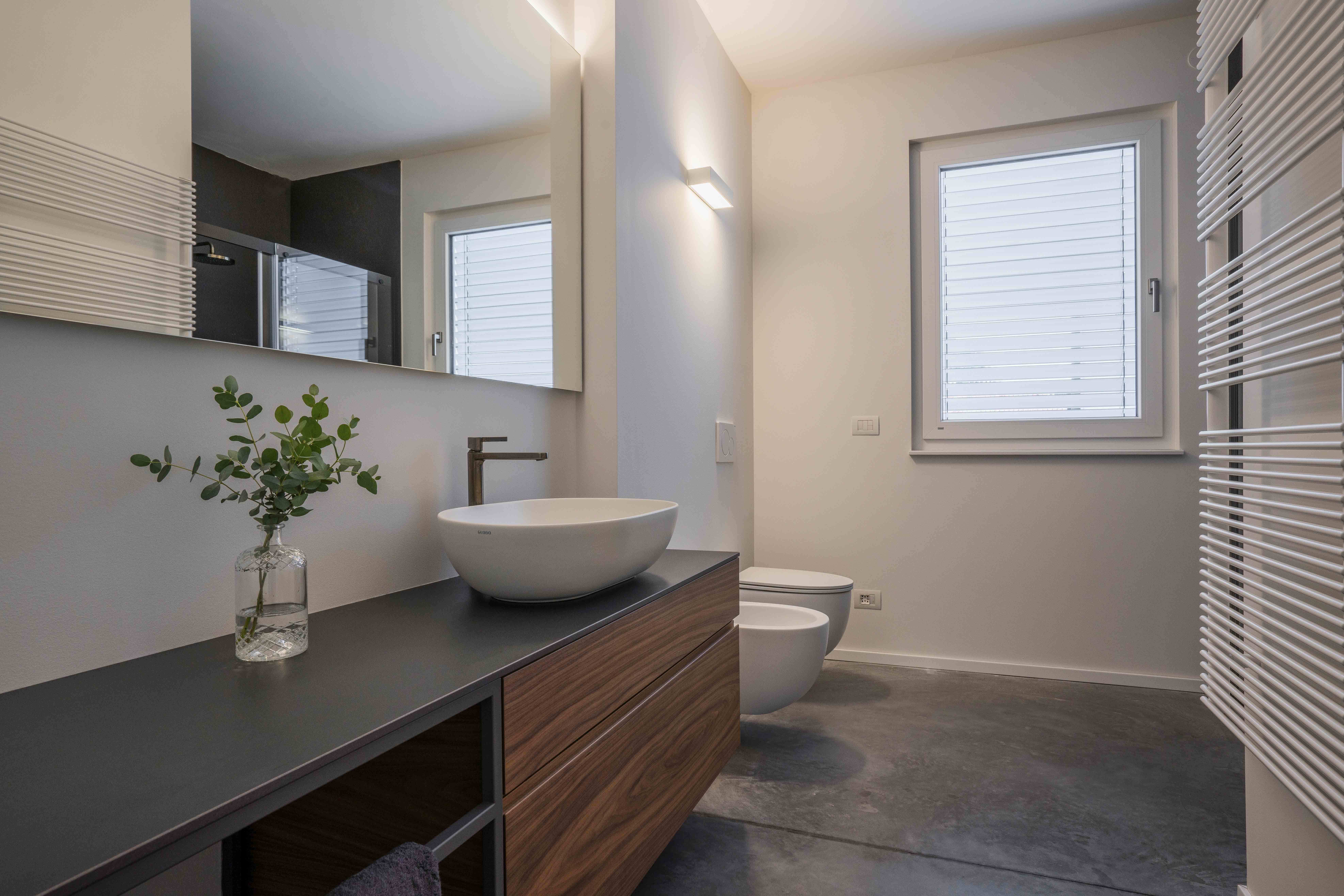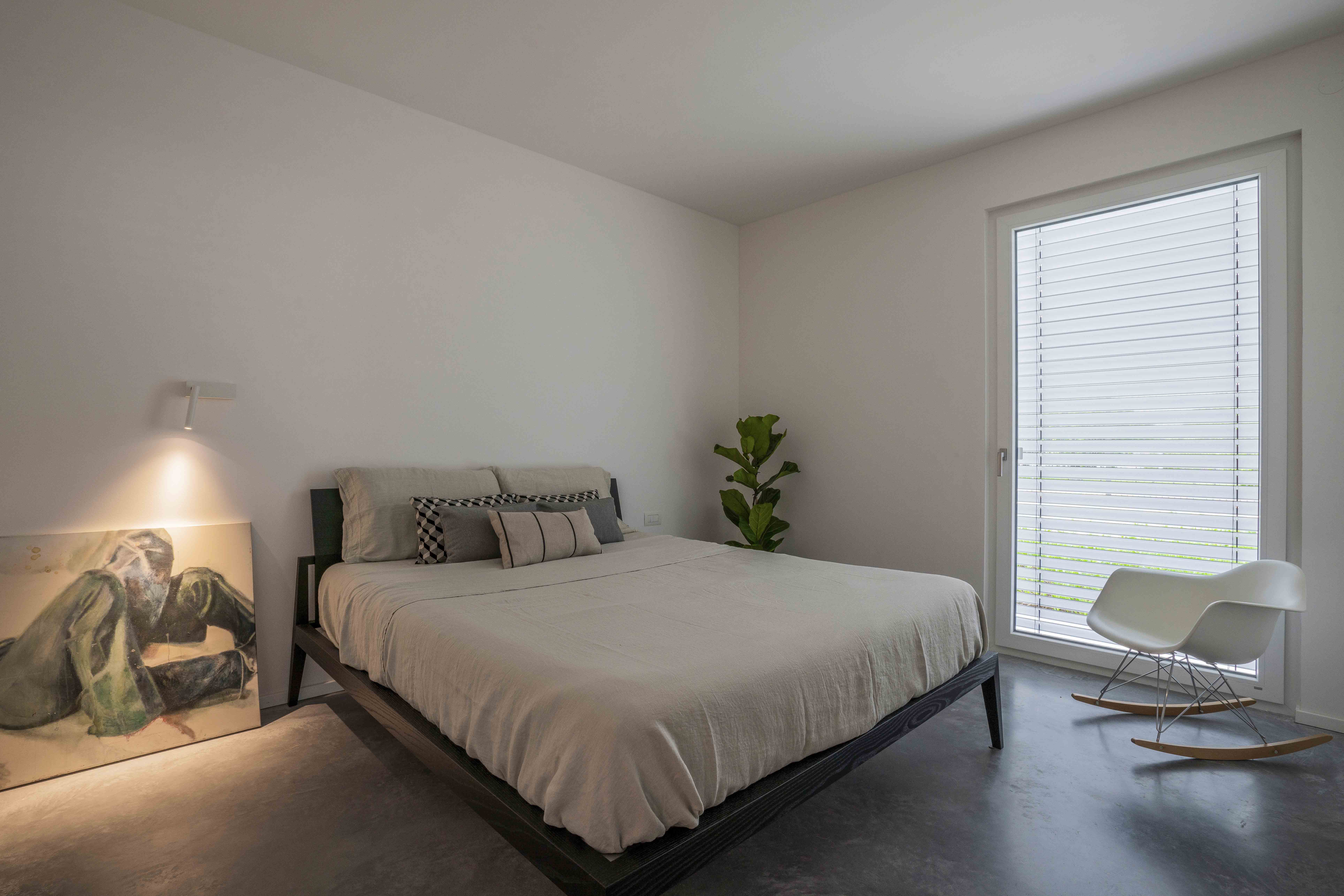 Gli arredi su misura sono funzionali, dal design minimalista; la panca sottofinestra definisce un momento contemplativo della natura, rigenerante.