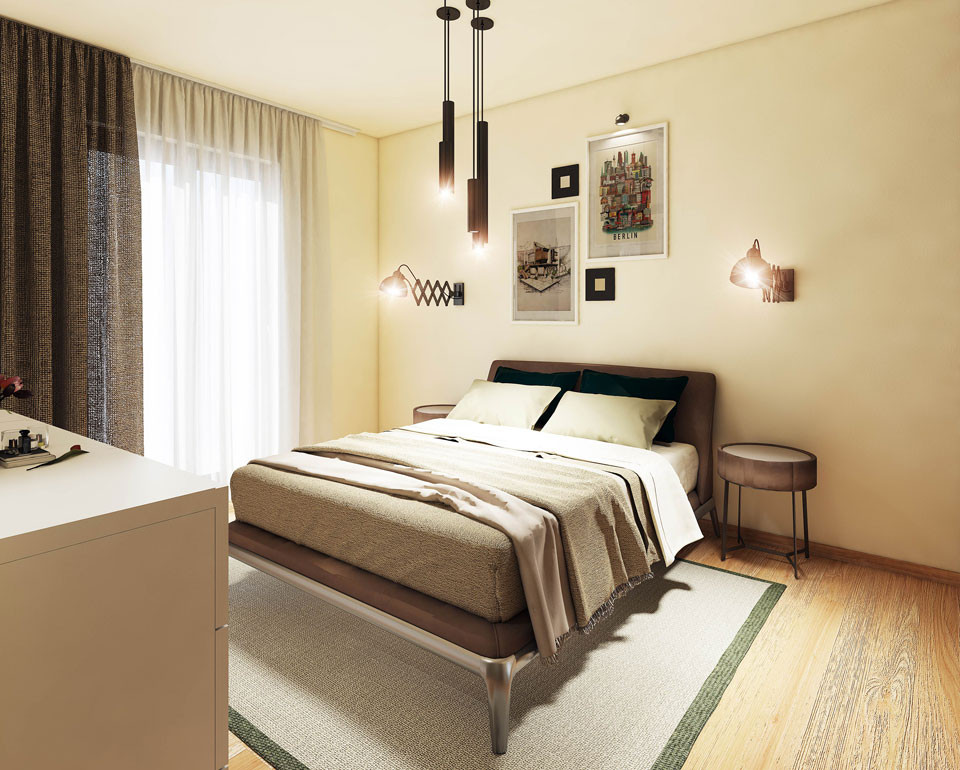 Per tutte le abitazioni è previsto un giardino di pertinenza esclusivo e caratteristiche dimensionali dei locali che superano i requisiti minimi richiesti dalle norme igienico sanitarie: come, ad esempio, le camere matrimoniali superiori ai 14,00 mq e le camere singole maggiori di 9,00 mq.