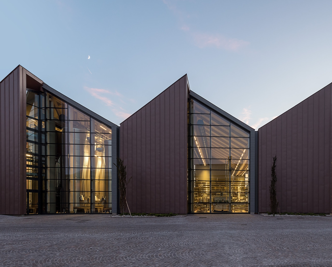 L'intervento di Wolf System - Wolf Haus ha rigurdato la prefabbricazione e montaggio della copertura e delle pareti del nuovo edificio per l'imbottigliamento.