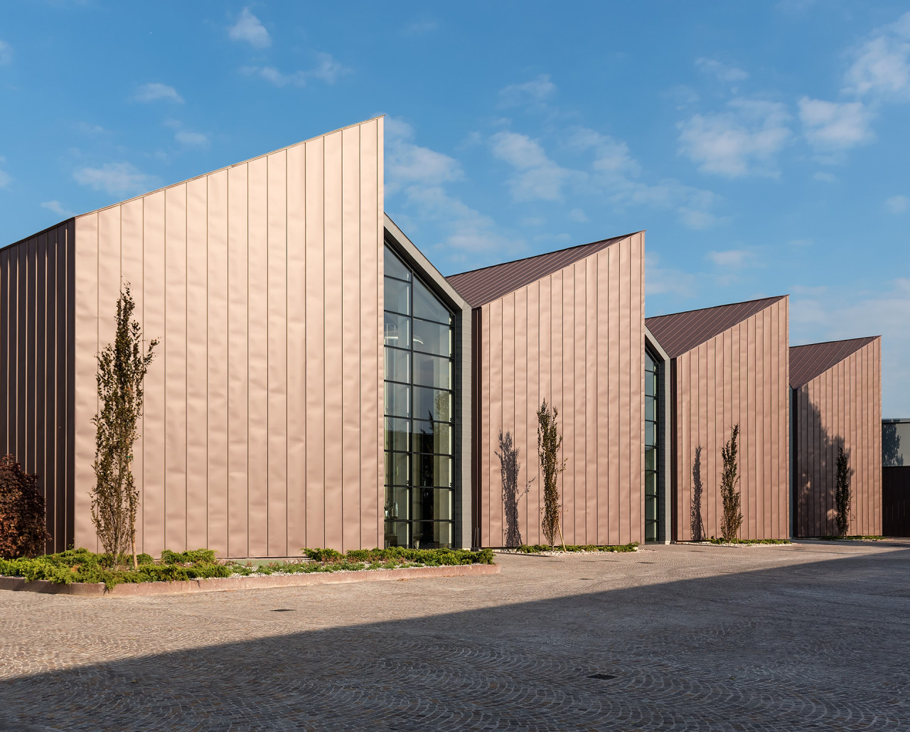 Copertura e pareti sono composte da uno stesso pacchetto stratificato, pre-assemblato in stabilimento, adatto a garantire massima coibentazione termica e uno sfasamento di circa 10 ore: caratteristiche indispensabili per il prodotto trattato.