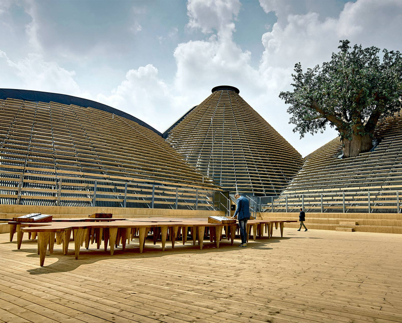 Wolf Haus, con la divisione Wolf System, si è distinta per avere realizzato le complesse strutture metalliche del Padiglione Zero e dell’Expo Center e il rivestimento esterno in legno degli stessi, composto da oltre 10.000 m² di facciata, 21.000 m² di copertura e 14.500 di gradinate, per dare alle strutture una finitura particolare. Il montaggio ha richiesto la grandissima abilità e competenza di 40 operai, che hanno dovuto lavorare con l’ausilio di funi e imbracature a causa dell’estrema inclinazione delle superfici (quasi 55%).